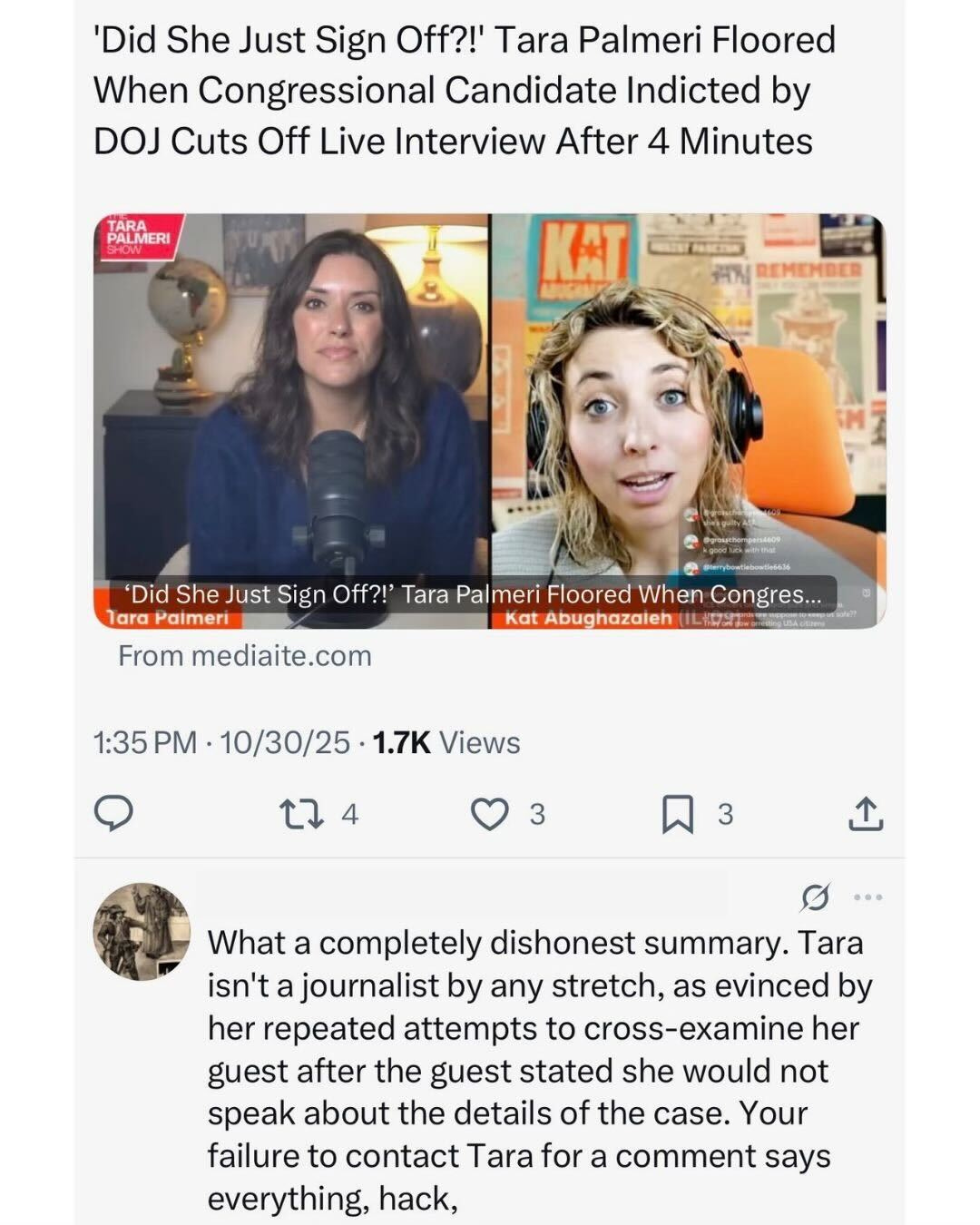 I interviewed congressional candidate Kat Abughazaleh, a rising social media star on the left. She’s smart, quick, and knows how to work an audience. But when I asked her straightforward questions about her recent indictment, basic questions about what happened, how she felt, and what it meant for her campaign she abruptly ended the interview.